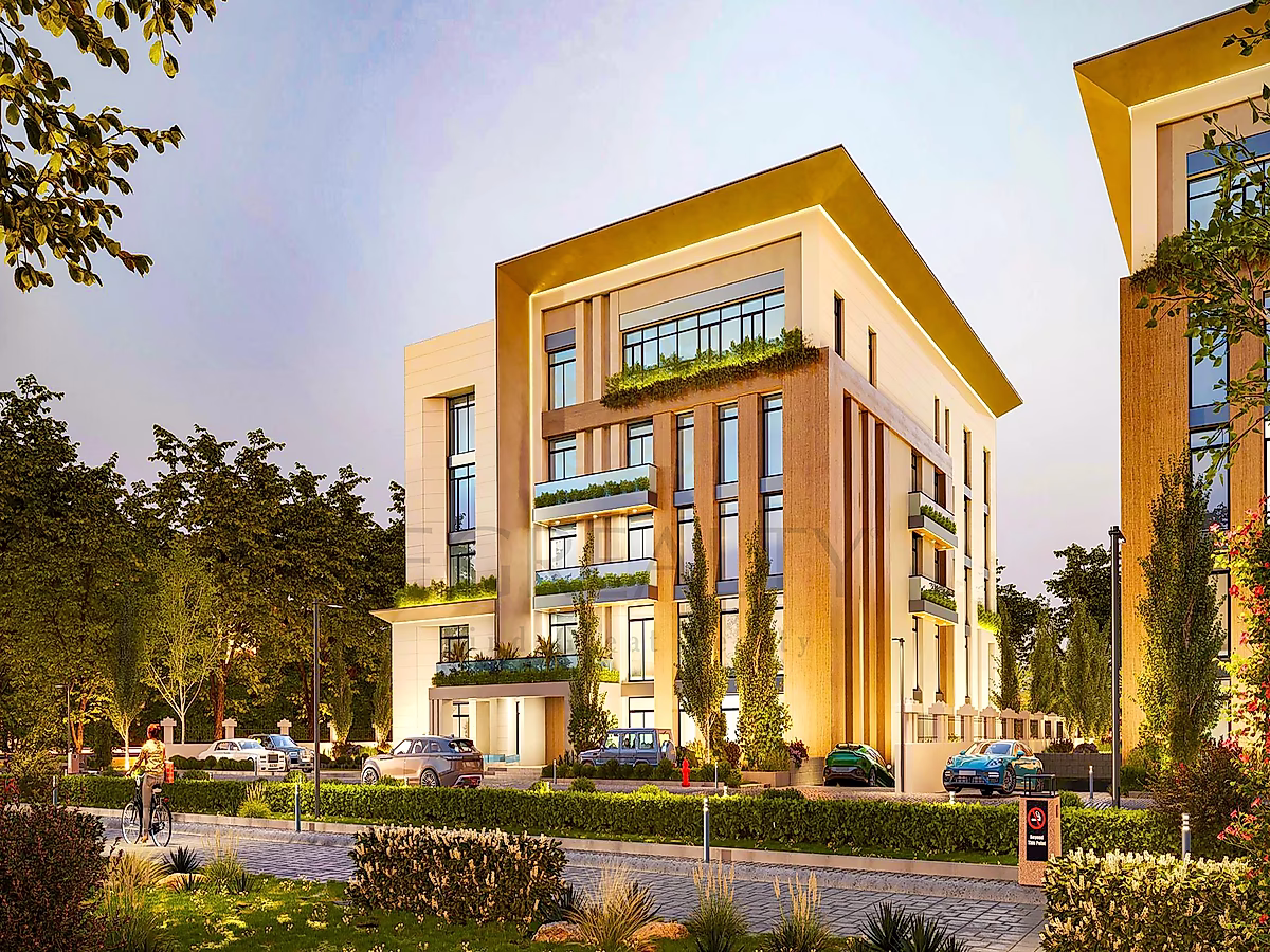 Located in an exclusive boutique low-rise development, the building features premium exterior finishes including stone, wood, aluminum cladding, and glass—creating a sleek, timeless façade.