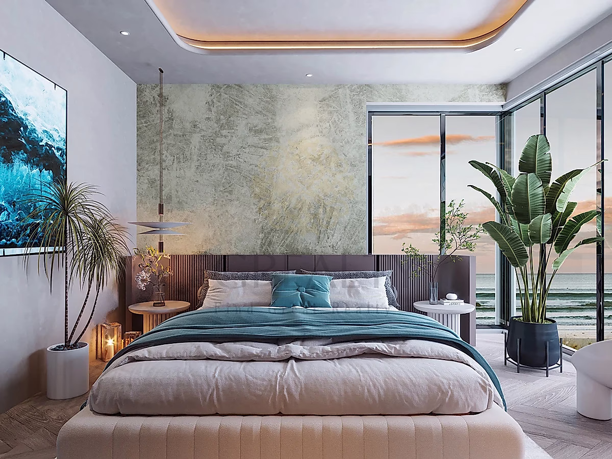 Direct beach access, swimming pool, 24/7 gym, landscaped gardens, children’s play area, lobby lounge, poolside cabanas, concierge, security, and maintenance.