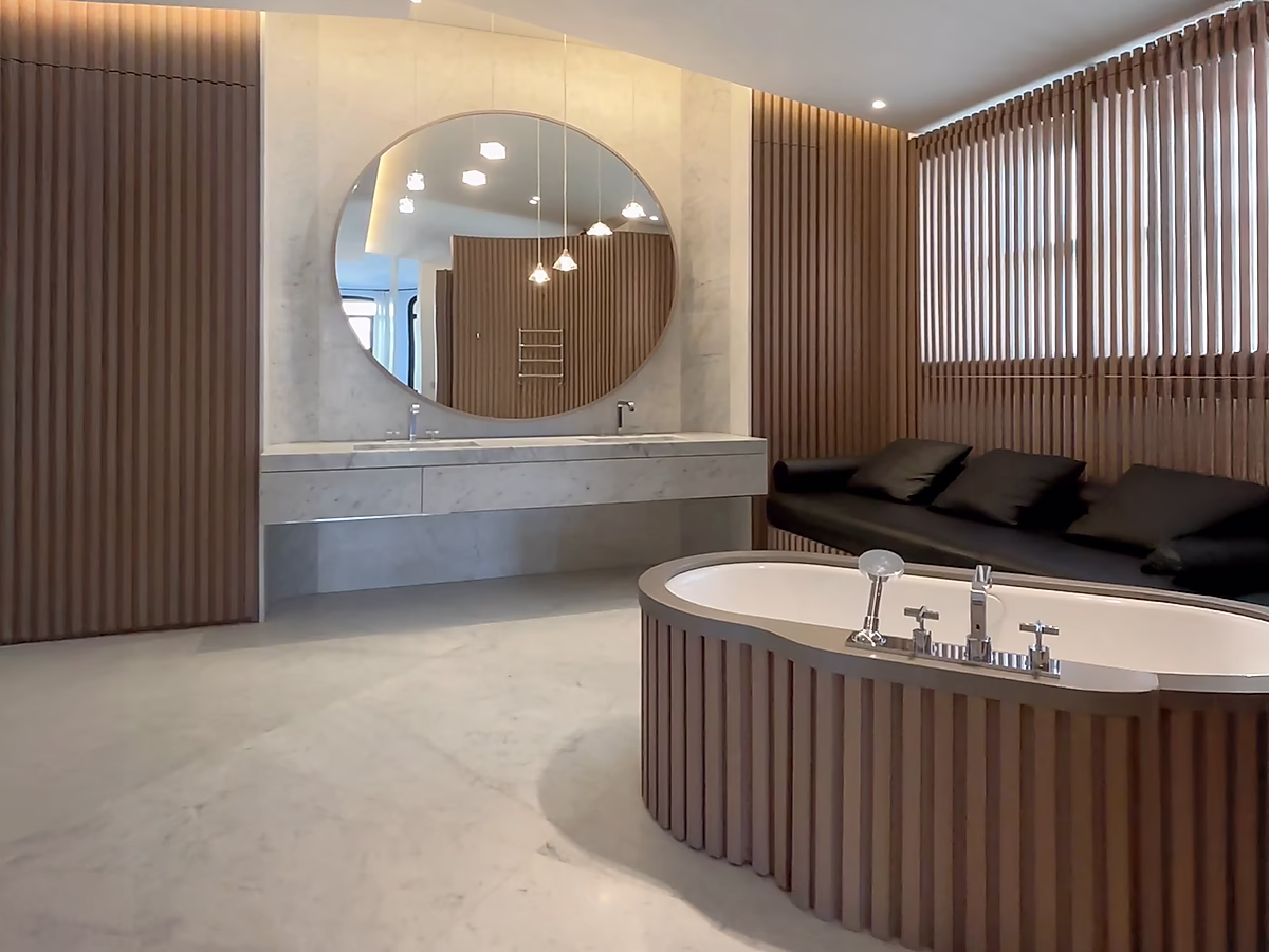 The 100 sqm master suite is a true retreat: spacious, serene, and equipped with a large dressing room and a luxurious en-suite bathroom. Four additional bedrooms provide ample accommodation for family and guests, each designed with privacy and comfort in mind.