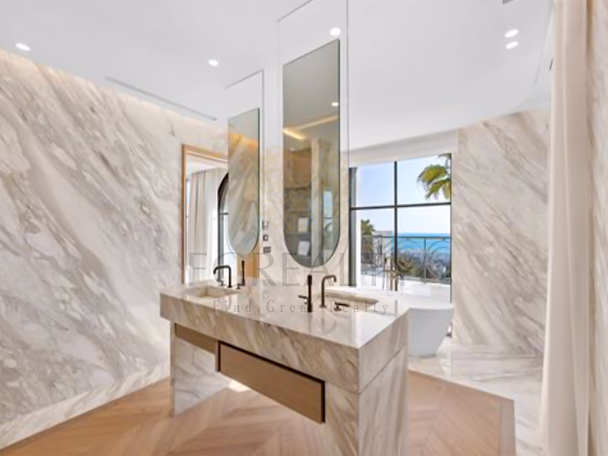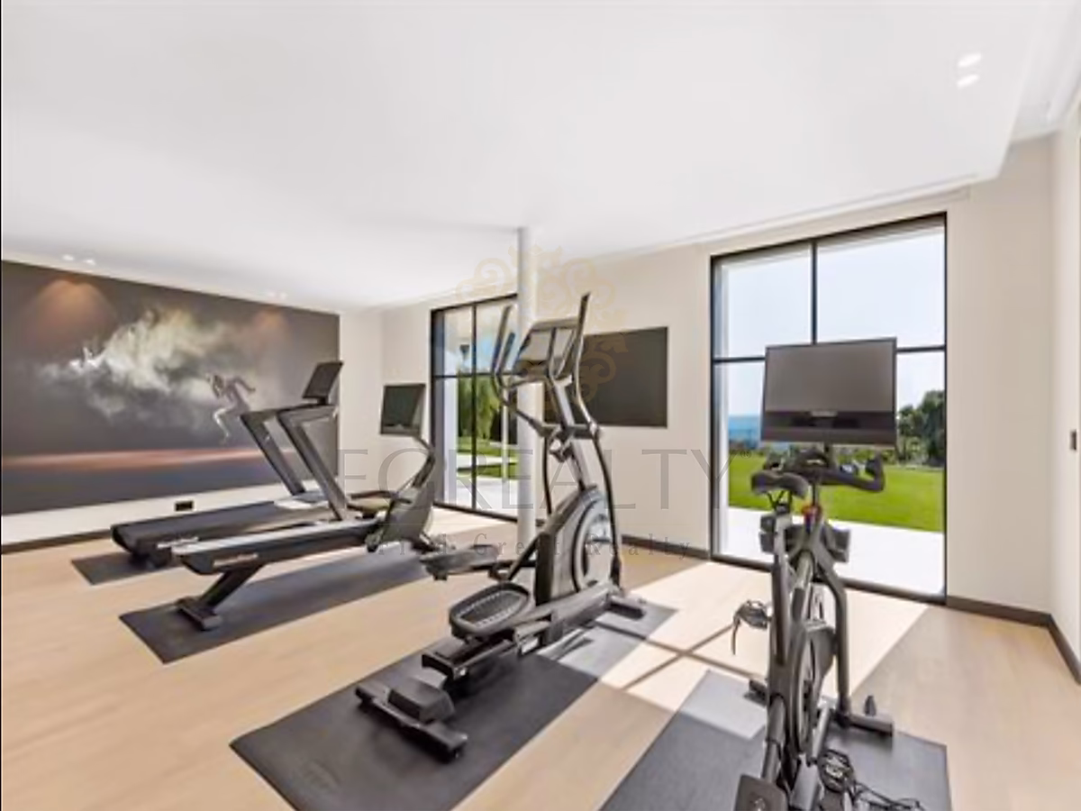 On the ground floor, the villa features four en-suite bedrooms with bathrooms and dressing rooms, a gym, a hammam, and a cinema room.