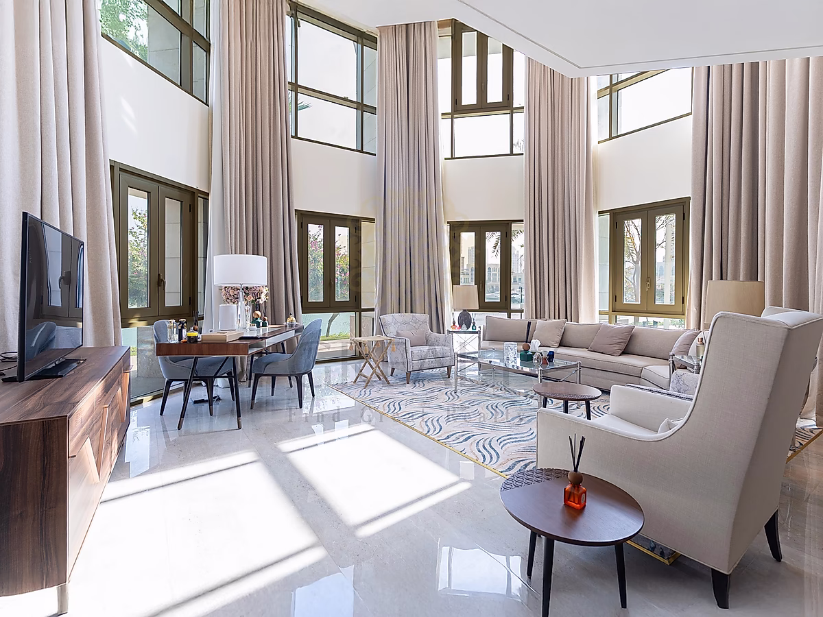 Spanning an impressive 500 sqm across two floors, this luxurious serviced residence offers the perfect blend of privacy, space, and five-star hospitality. Designed with refined elegance, the home features expansive living and dining areas, high-end finishes, and floor-to-ceiling windows that fill the space with natural light.