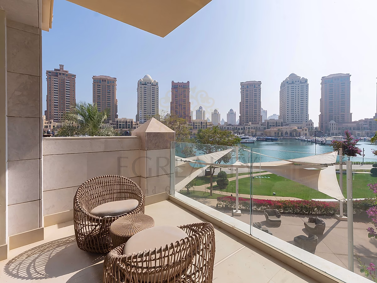 Residents enjoy a resort-style environment surrounded by lush landscaping, marina promenades, and vibrant retail and dining destinations, making it one of Doha’s most sought-after luxury addresses.