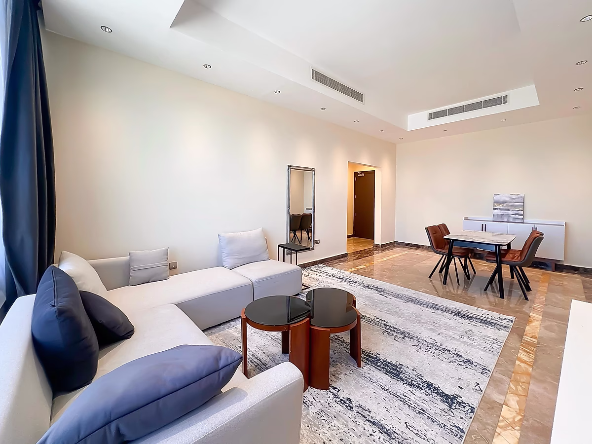 Two Spacious Bedrooms: Equipped with built-in wardrobes, air conditioning, and cozy bedding to ensure a restful living environment.