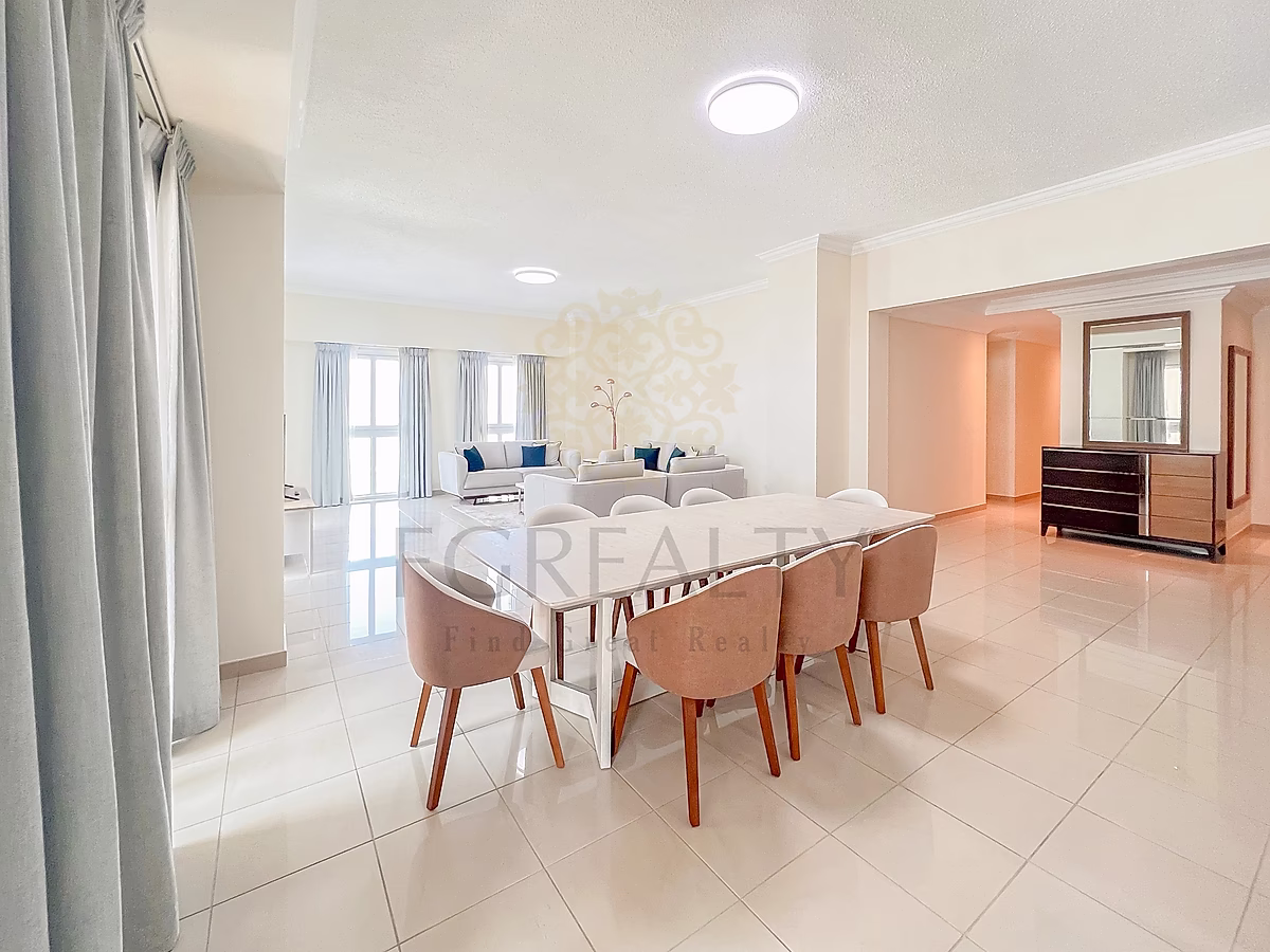 Experience comfortable city living in the heart of West Bay with this spacious fully furnished 3-bedroom apartment plus maid’s room, offering a partial sea view and excellent amenities.