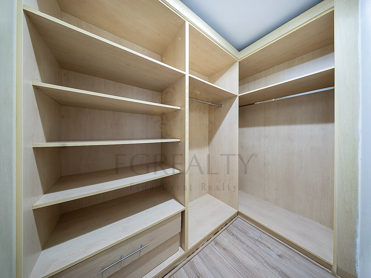 Spacious bedroom with built-in wardrobes