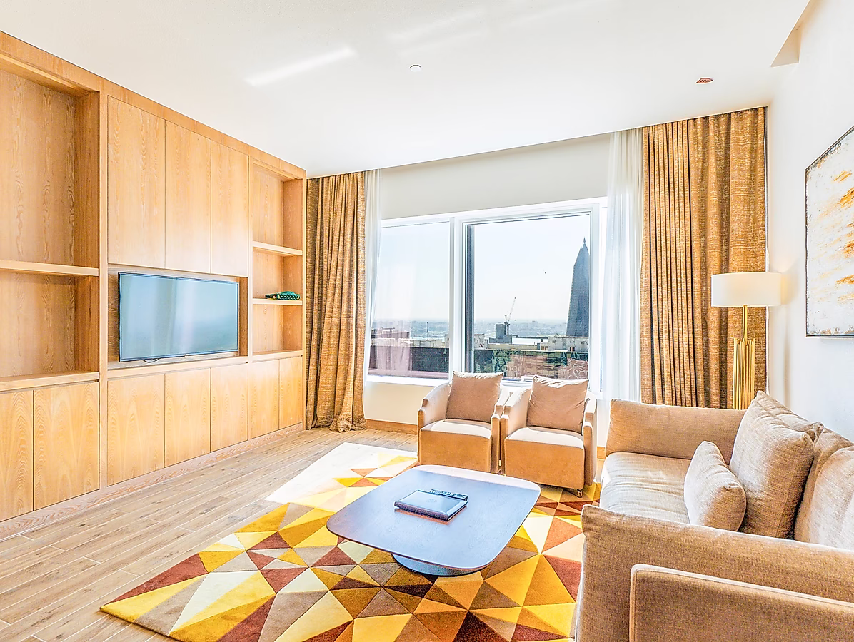 Unwind in style at this contemporary 1-bedroom serviced apartment, a premier destination in West Bay Doha. This elegant retreat offers the perfect blend of comfort and convenience, ideal for both short and extended stays.