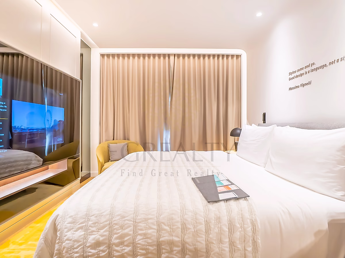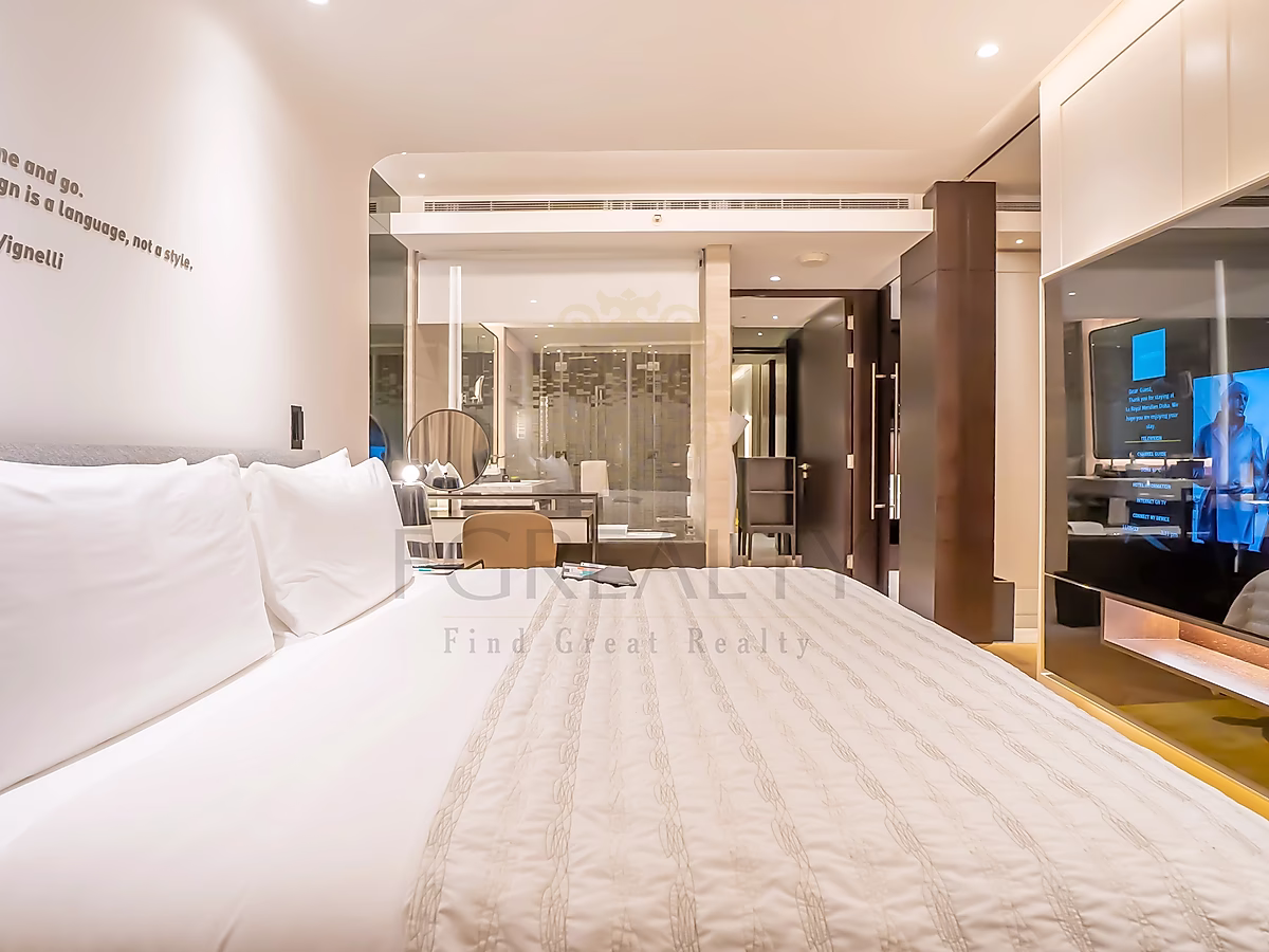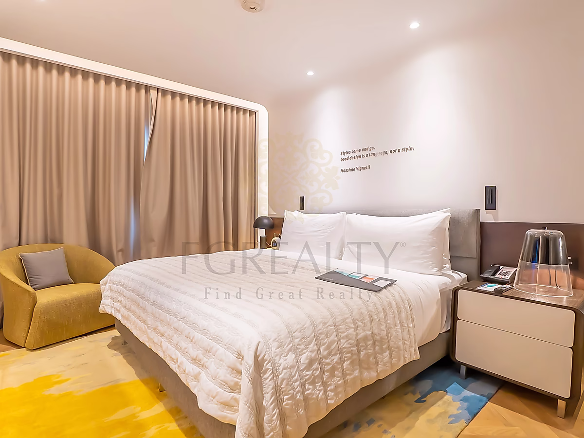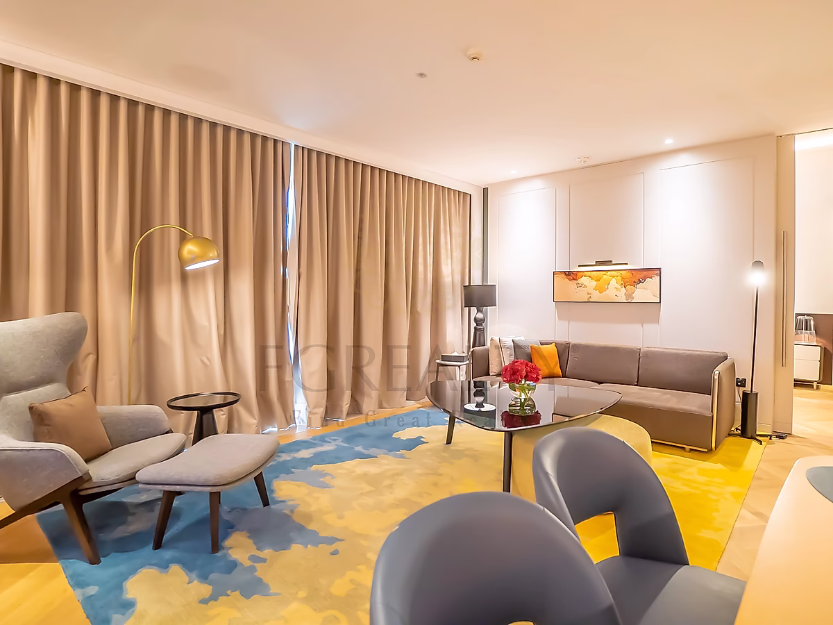 Experience elevated living in this beautifully designed 1-bedroom superior apartment, featuring chic, modern furnishings and top-tier amenities for maximum comfort. The suite offers a spacious bedroom with a plush king-size bed, a separate living area ideal for relaxation, and large windows that flood the space with natural light while offering scenic views of the surrounding area.