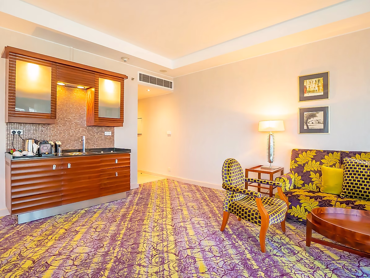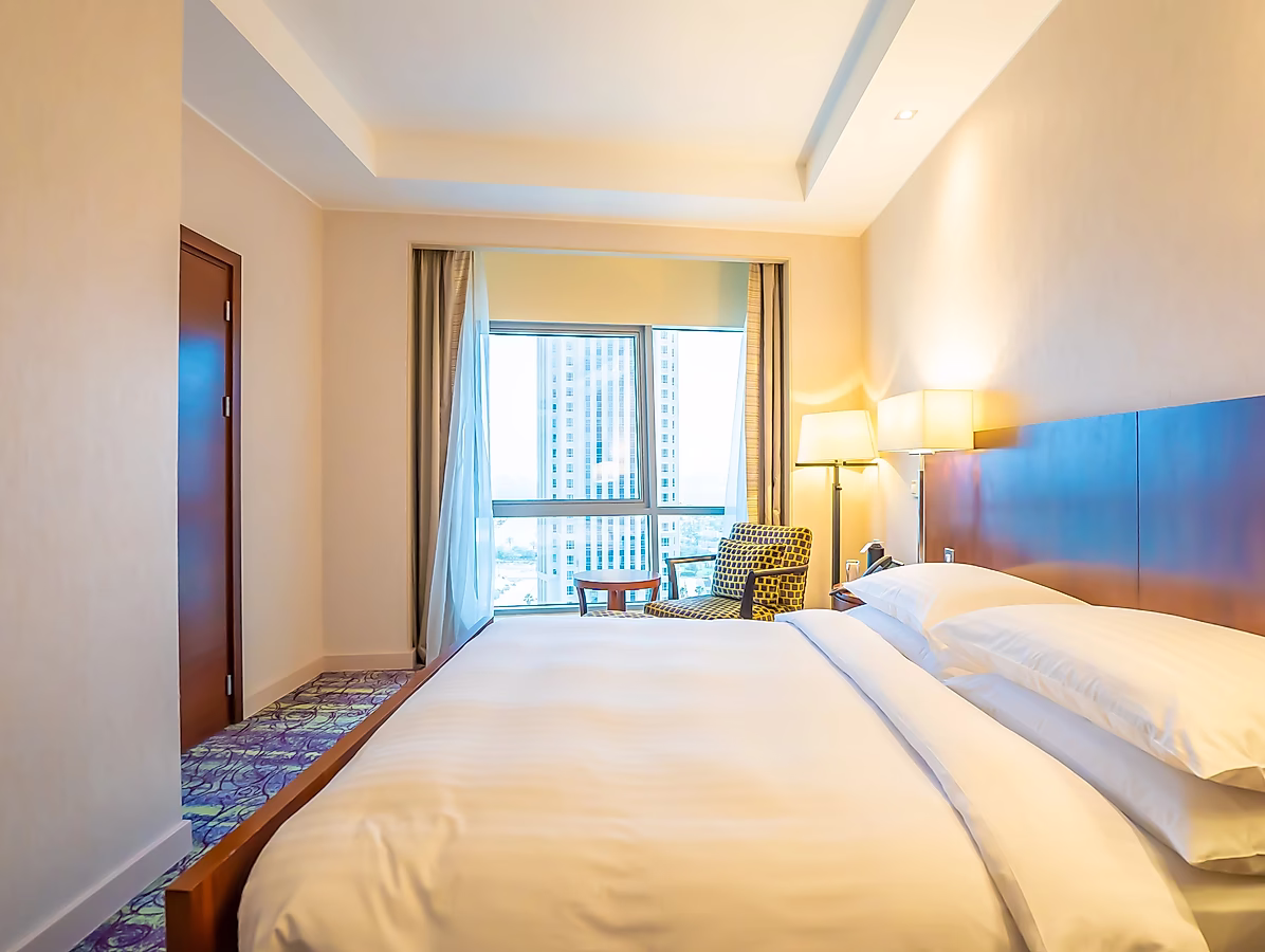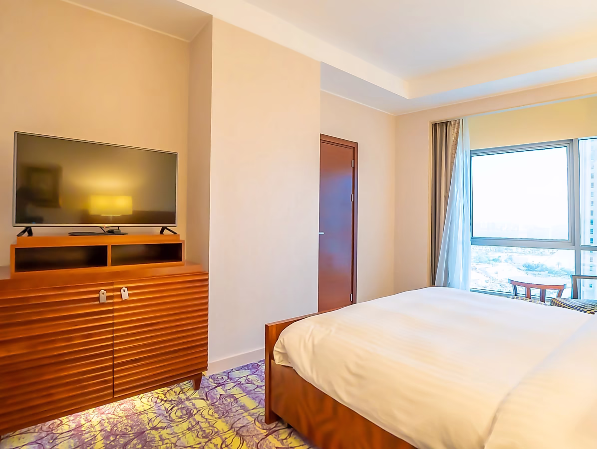 Welcome to our stylish and generously sized one-bedroom hotel apartment, perfectly situated in the heart of the city. Ideal for couples or small families, this modern space offers the comfort and functionality you need for a relaxing and convenient stay.