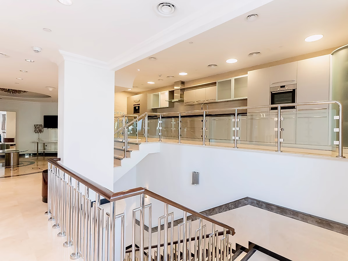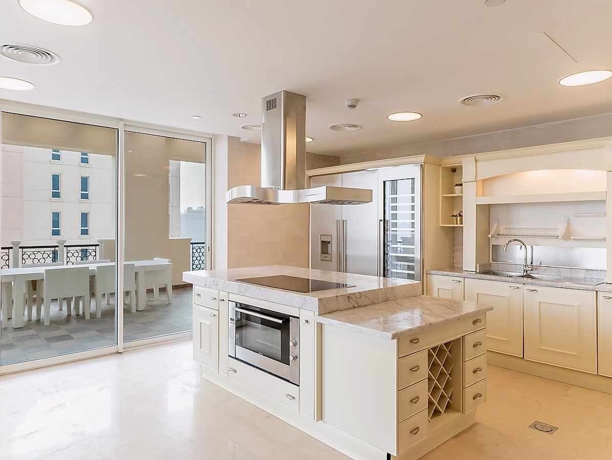 The residence is a two-story penthouse with spacious living rooms that can be used by your family and friendly gatherings; an expansive rooftop terrace overlooking the marina bay with all the residential towers of Porto Arabia. If you are a passionate cooker, a large kitchen will be perfect for putting your cooking equipment and preparing your dishes.