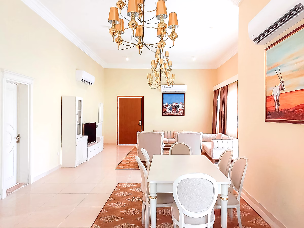Discover a spacious and well-appointed 3-bedroom townhouse, thoughtfully designed for families or groups seeking comfort, convenience, and a touch of authentic Qatari hospitality. Blending traditional charm with modern amenities, this inviting home-away-from-home is perfect for short or extended stays.